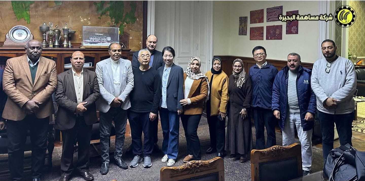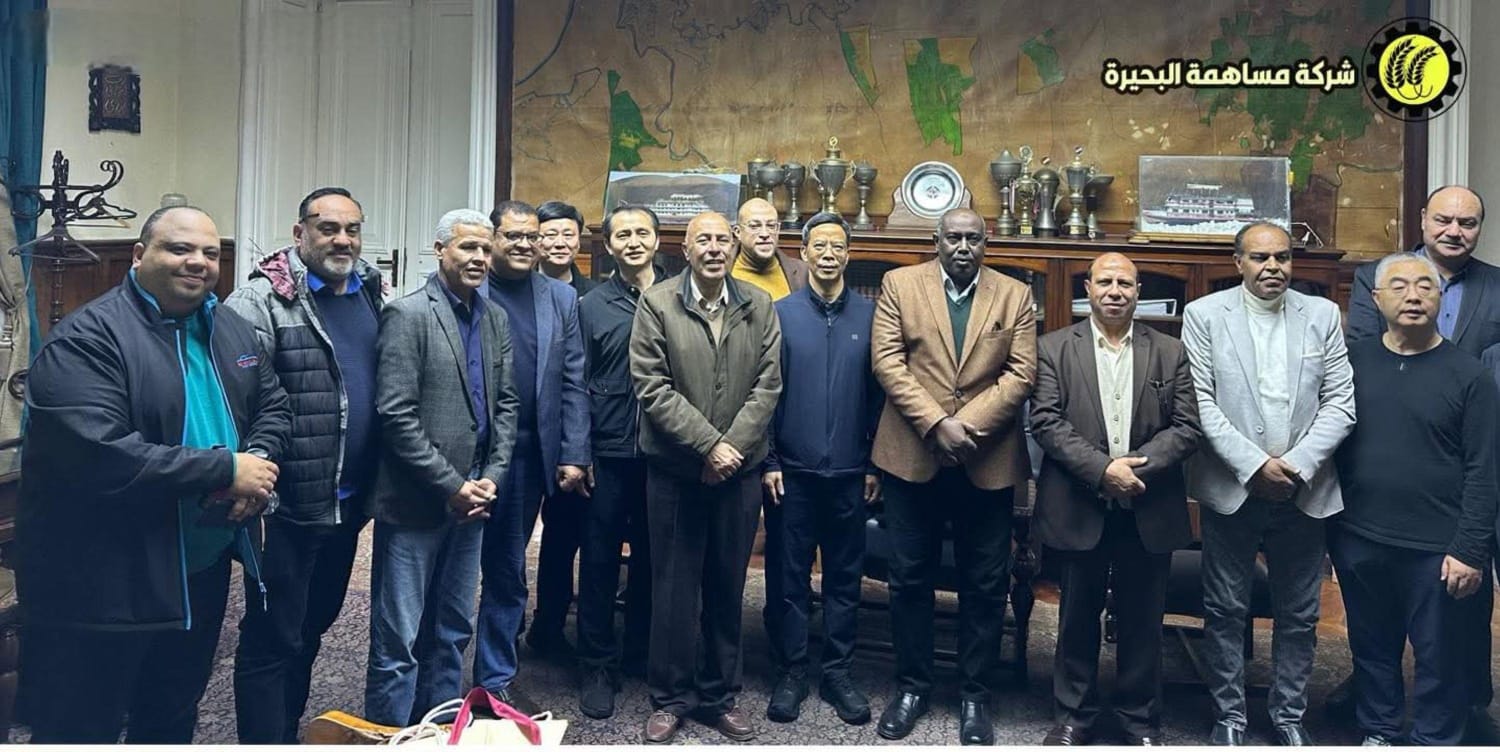 جانب من زيارة الوفد النقابي الصيني لشركة مساهمة البحيرة برفقه أعضاء النقابة العامة .